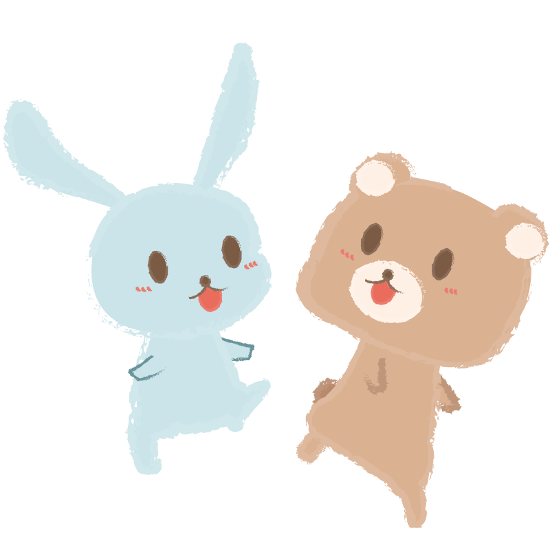 保育園や幼稚園でかけっこで遊ぶ、かわいい子ウサギと子クマのイラストです。