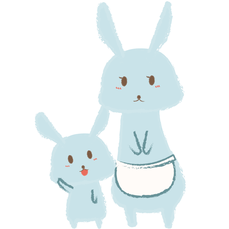 子ウサギと親ウサギ(母)が寄り添っているイラストです。