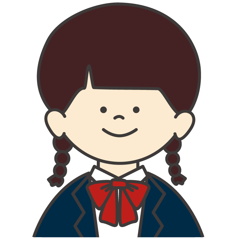 ブレザー(紺色/赤リボン)の学生服を着た女子生徒のイラストです。卒業式や入学式シーズンの挿絵にどうぞ。