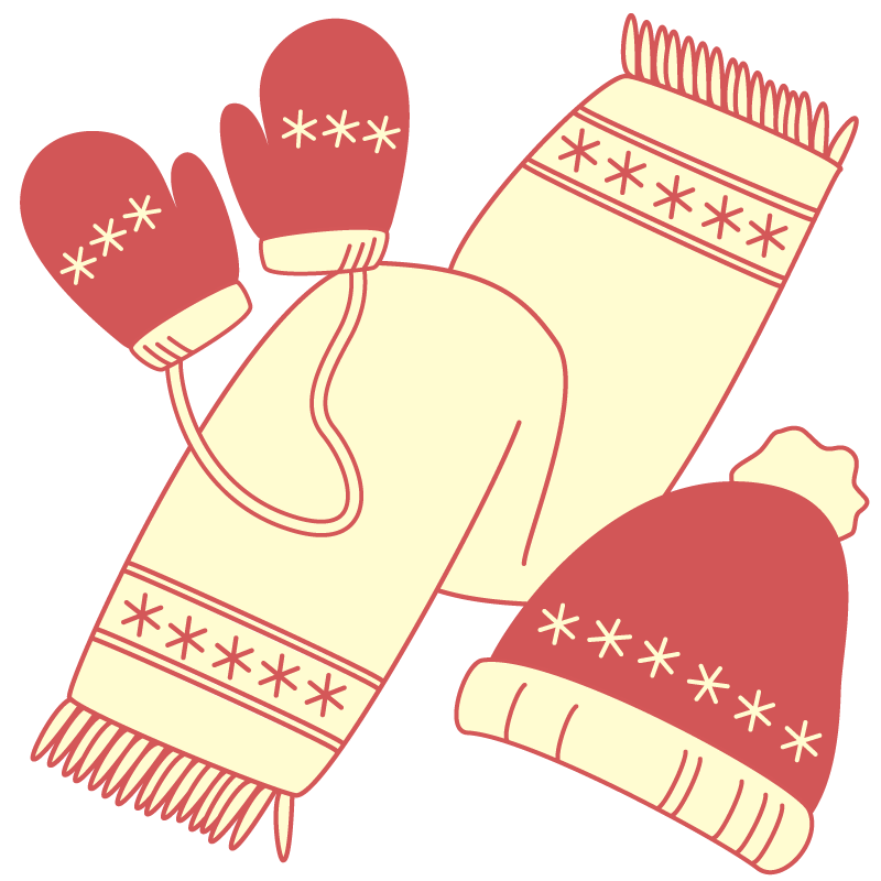 防寒具(手袋、マフラー、ニット帽)のイラストです。